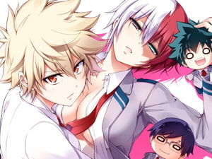 ヒロ○カ、デク×轟、デク×爆豪 3P女体化成人向け