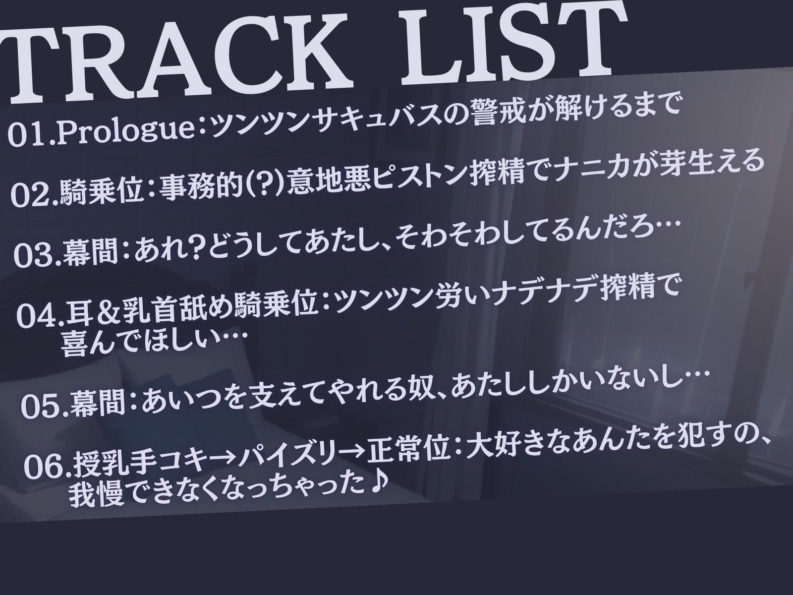 大雨でずぶ濡れになっていた少女・月花(げっか)を保護したアナタ。月花は自力で生きていけない駄目サキュバスでした。「お互いに支え合う」と約束したアナタは、月花に精液を差し出すために体を重ねますが…「あんたを○すの、もう我慢できなくなっちゃった…♪」〝恋心〟と〝サキュバスの本能〟が大暴走♪耳も乳首もおちんぽも容赦なくトロトロに犯され、食い尽くされながら〝両想い〟になっていきます♪