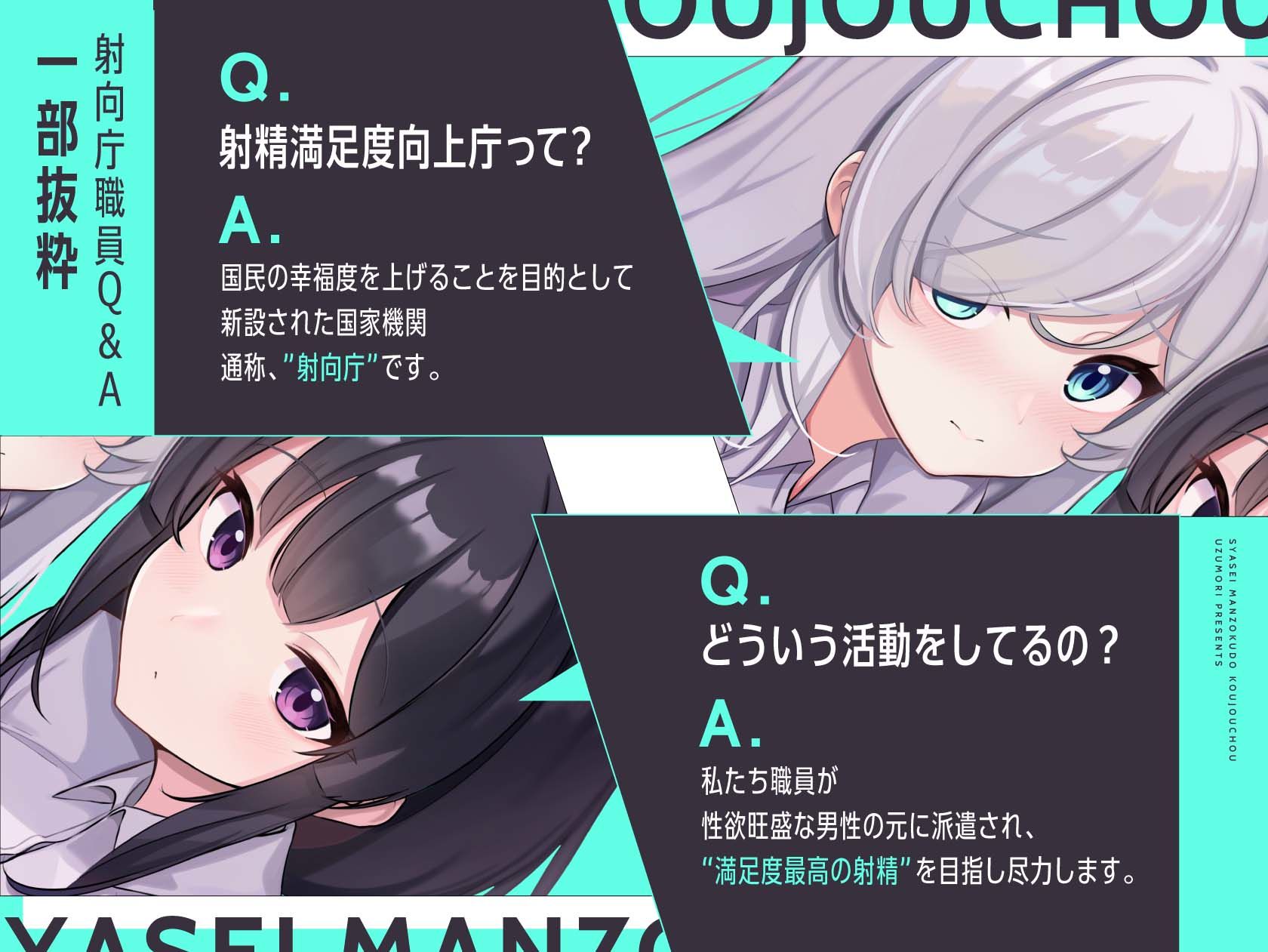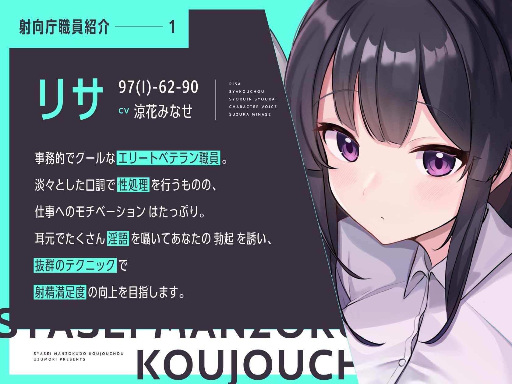 エロテク抜群の事務的クールヒロイン×不慣れながら一生懸命搾精を頑張る真面目ヒロイン!“射精満足度向上庁”から派遣される2人の極上サポートを受けながら”満足度最高の射精”を探求せよ!CV:涼花みなせ様、陽向葵ゅか様