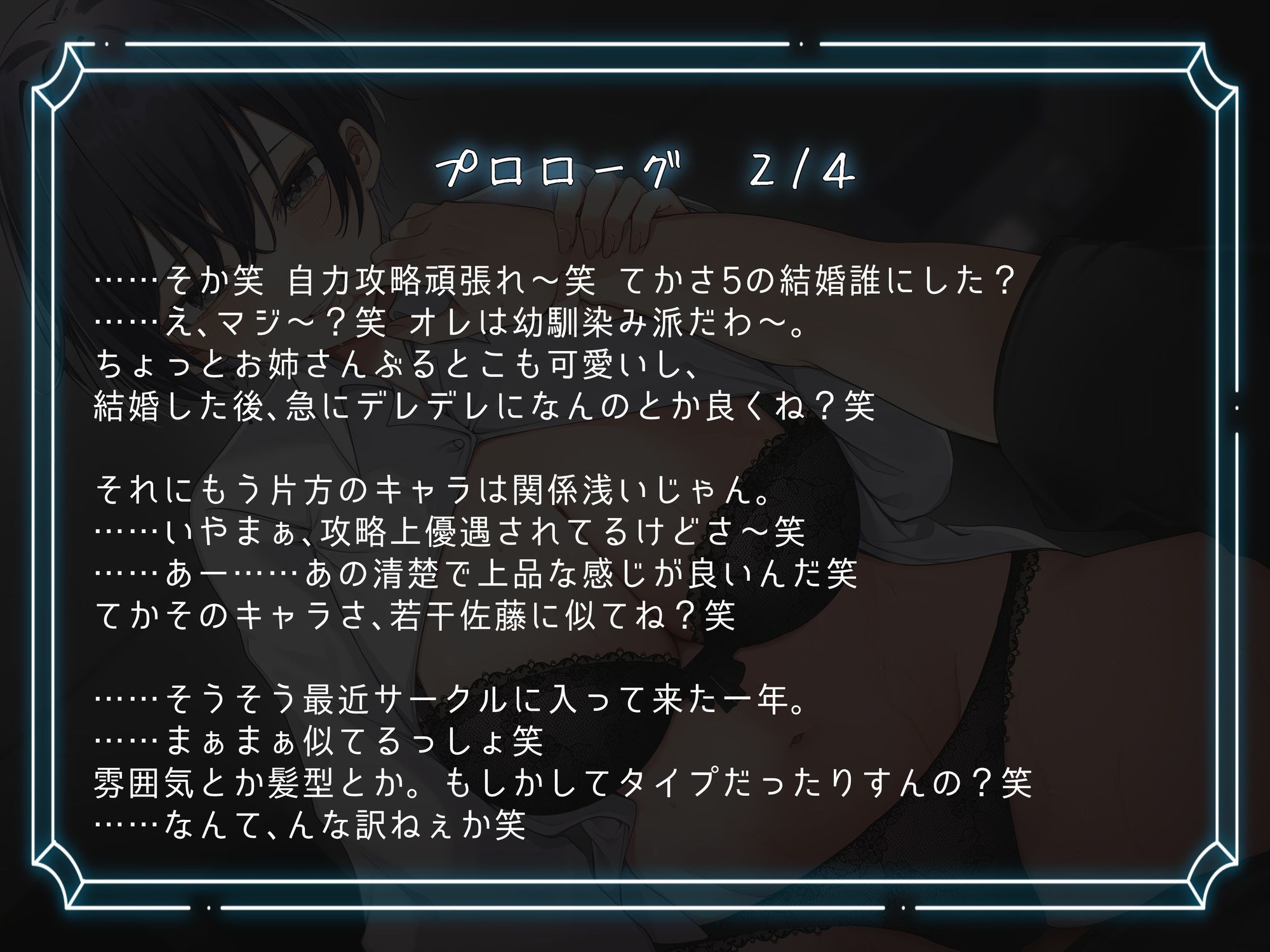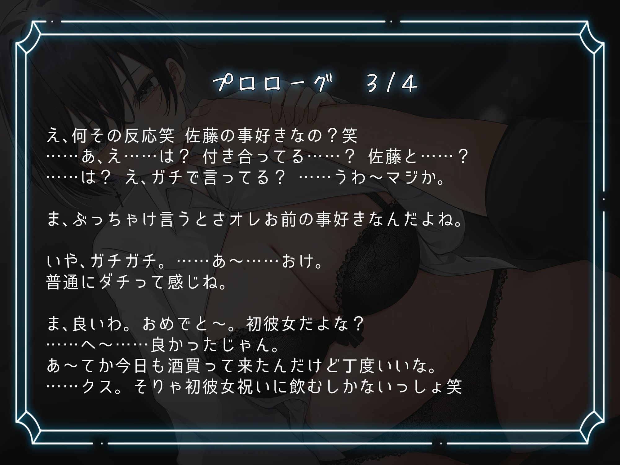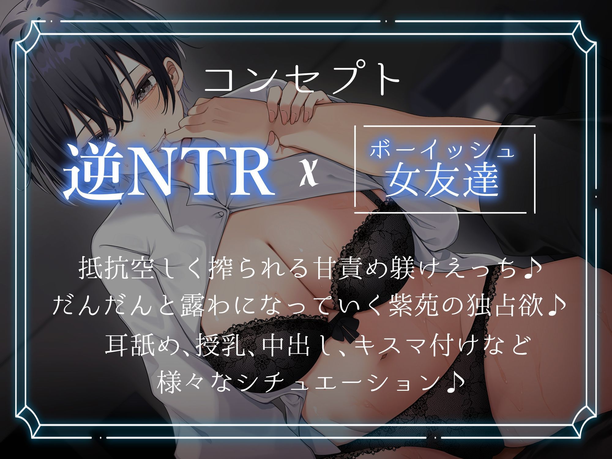 大学生のあなた。 話の流れで最近彼女が出来た事を親友の紫苑に話す。 すると、さらっと好きだと告白されてしまう。 面食らいつつもやんわり断ると分かってくれたようだった。 「初彼女祝いに飲むしかないっしょ笑」 ボーイッシュ女友達の強引えっちで身も心も奪われていく音声作品!(CV:餅梨あむ様)