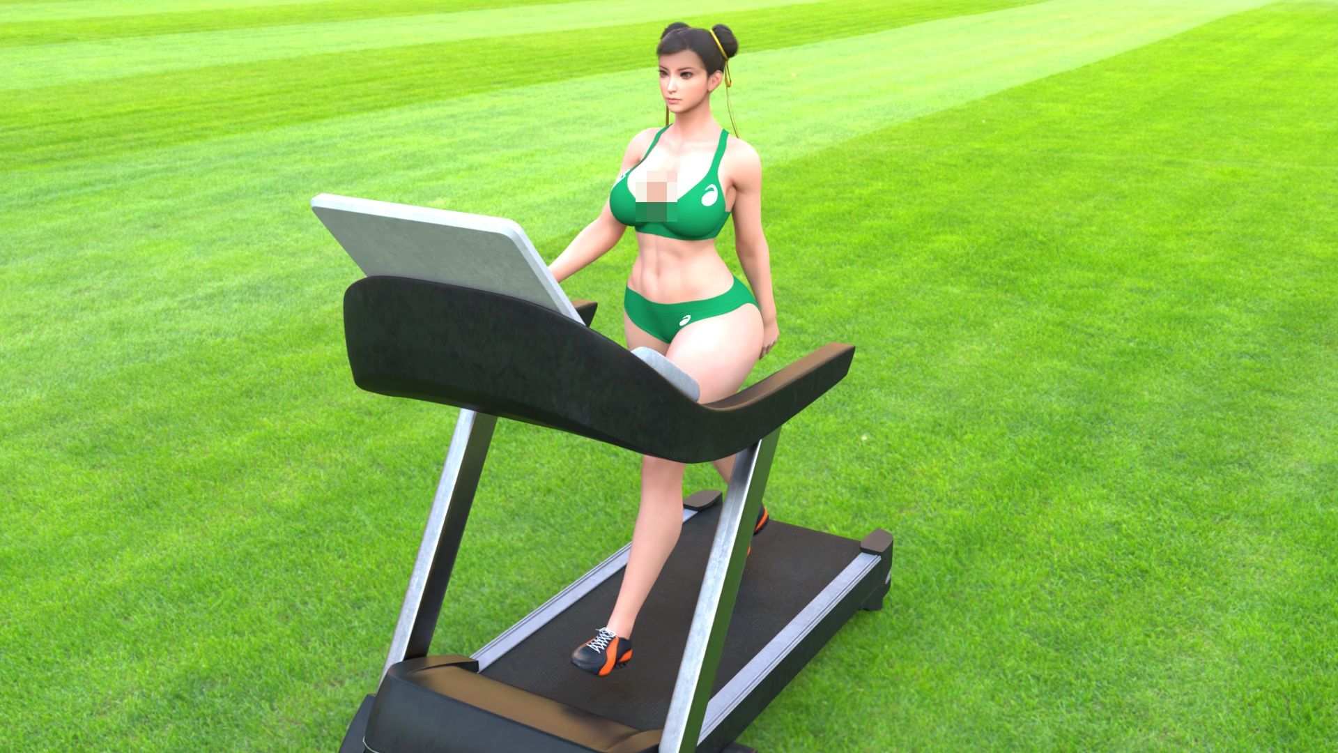 元祖中華女性格闘家「チュンリー(春麗)」の陸上競技ユニフォームウォーキング乳揺れ