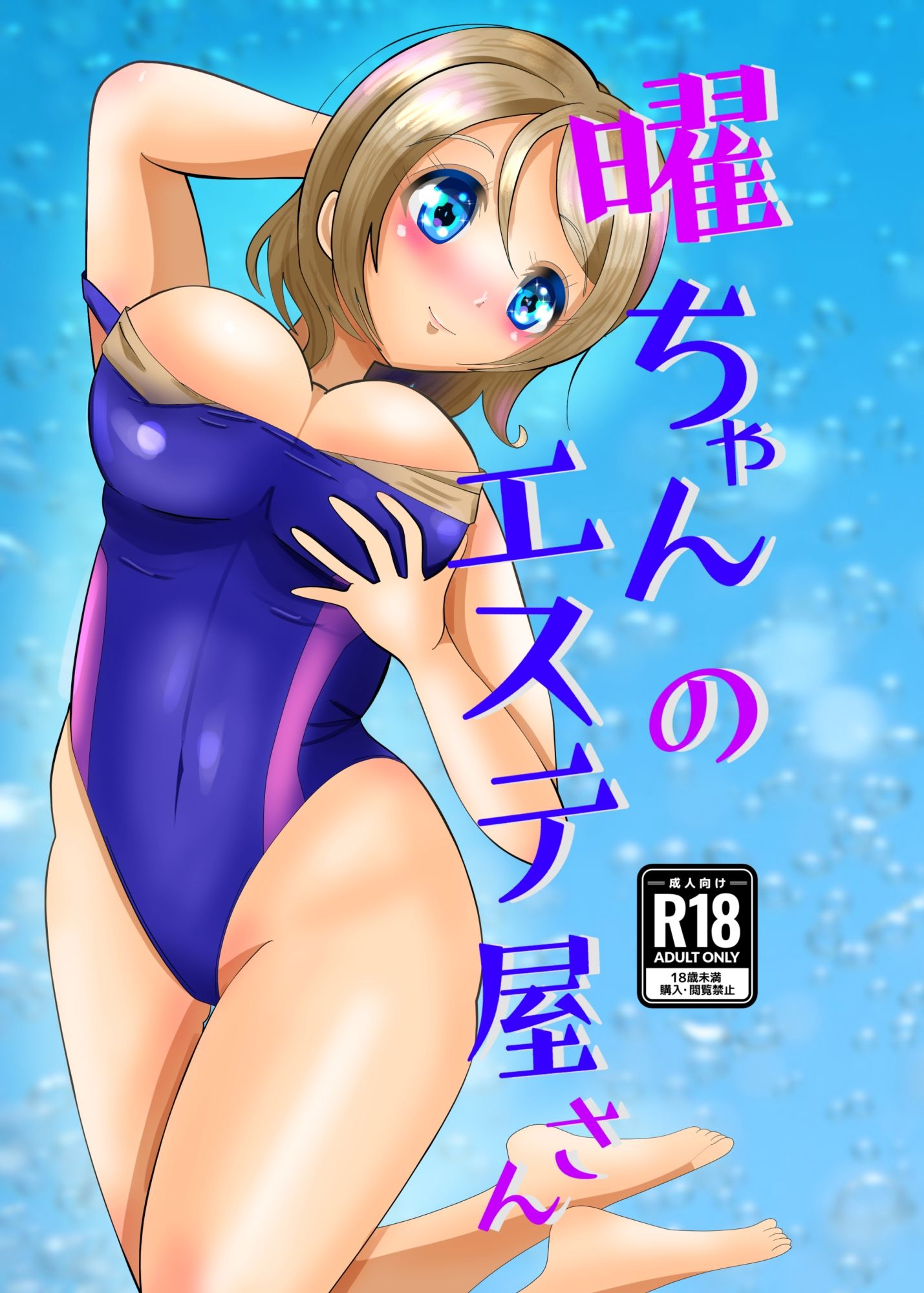 ある日突然「競泳水着でご奉仕するマッサージ屋さんがやりたい!」と宣言した、Aq◯ursのムードメーカー、渡◯曜ちゃん。ローションも使いこなしてお客さんを優しく施術するのだけれど……。モノクロ8ページの超短編マンガ。