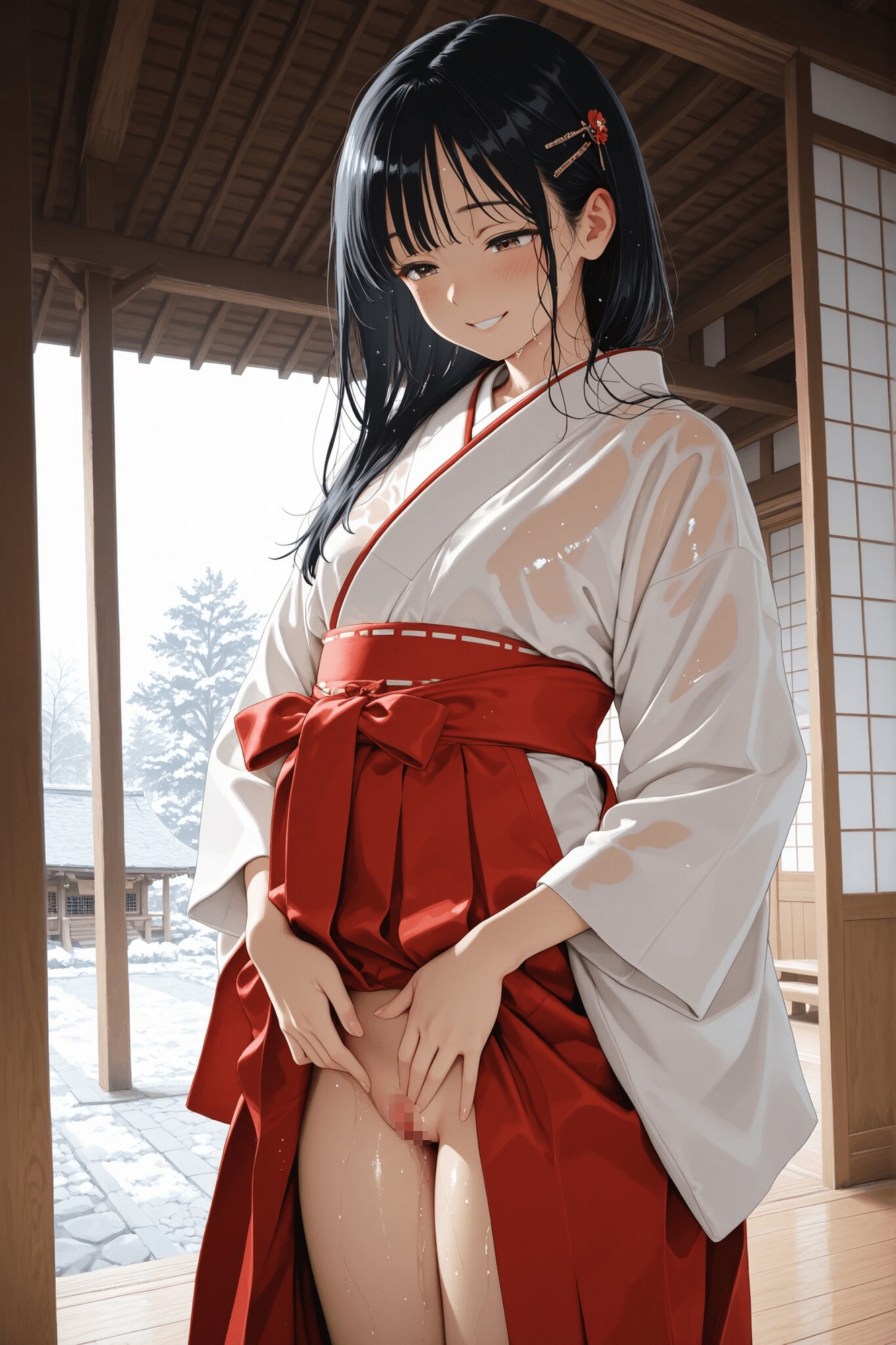 巫女さんと着たままえっち! 袴は脱がさないで…。