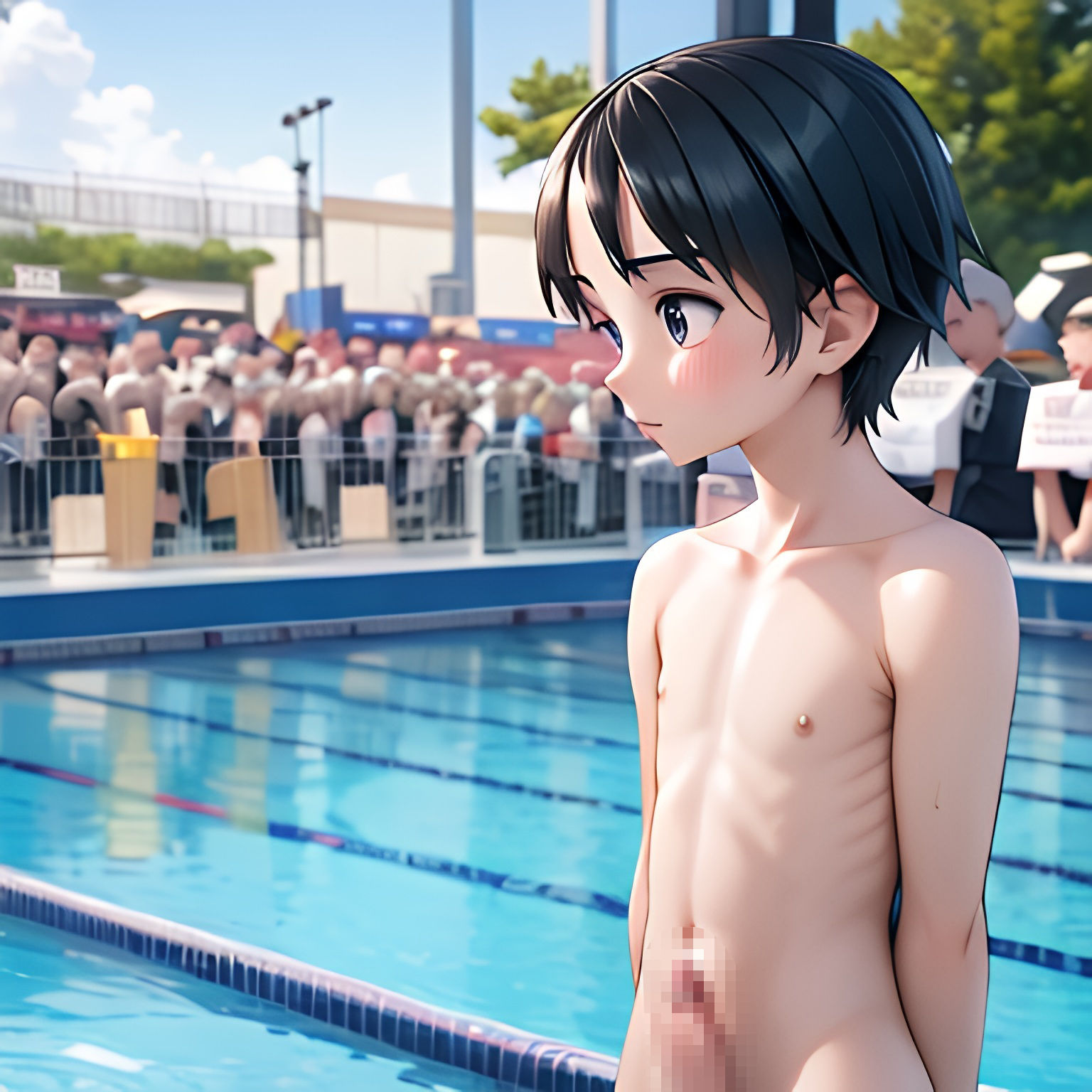男の娘がプールでフル勃起おちんちん見せつけ写真集