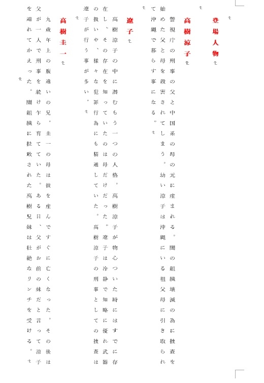 沖縄で拉致され救出された少女。少女の名は高樹涼子、幼い頃、父と母を反社組織に殺害された過去を持つ。少女は成長し腹違いの兄と共に、反社組織の裏取引の情報を探り、警察への密告を重ねていた。 少女は警察組織の一員となり、身体と心の全てを使って、犯罪捜査に関わっていく。