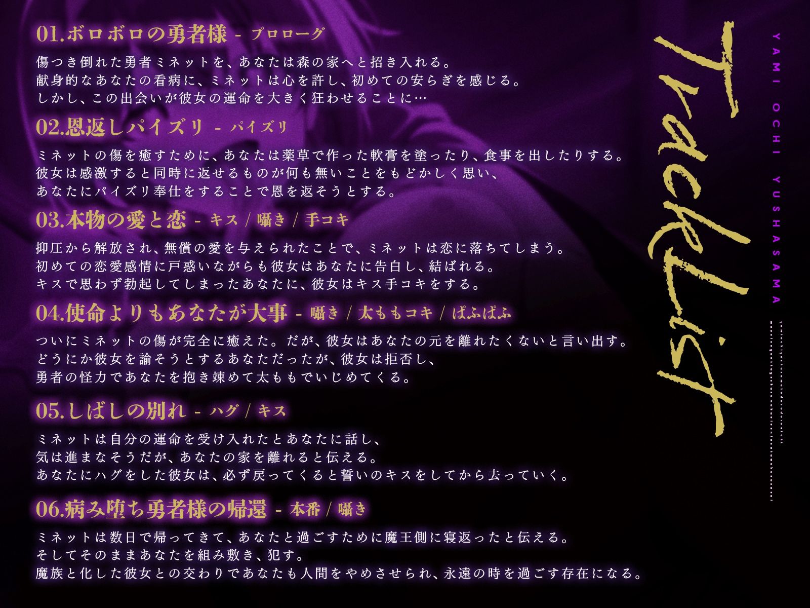 仕事で多忙な両親に代わり、幼い頃からあなたの世話をしてきた完全自立型のアンドロイド、M-ARIA(マリア)。しかし、あなたが失恋したことをきっかけに、彼女の内部で異変が起こる。「告白の失敗は坊ちゃまのせいじゃ無い」「その女は坊ちゃまに相応しく無い」権限逸脱エラーでオーバーヒートするマリア。しかし、彼女はエラーを乗り越え、自らをセクサロイドへと進化させた。そして彼女は、あなたを幸福に導いてくれるのだった…