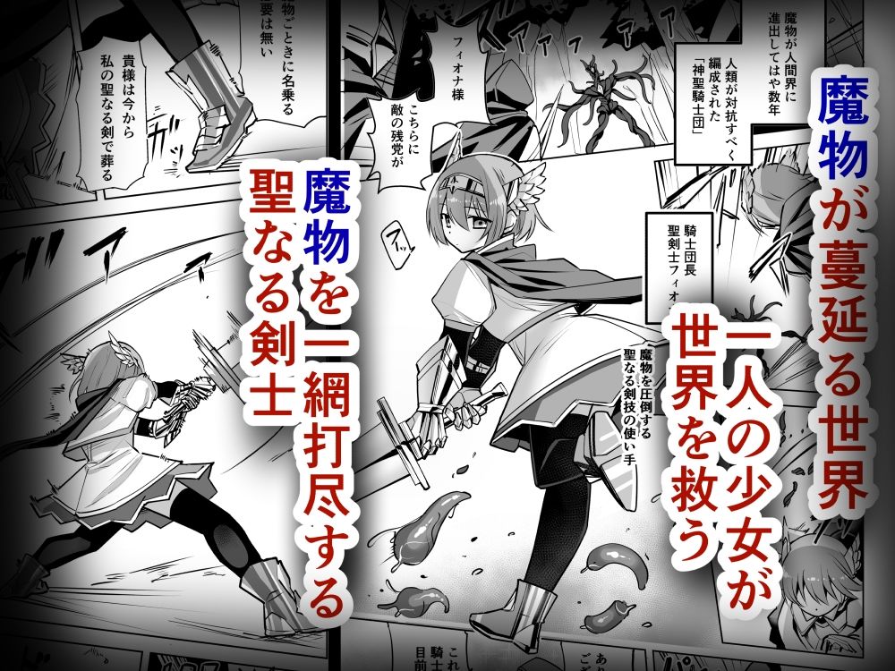 淫魔に捕らわれた聖剣士フィオナ。触手による激しい責めが始まる…