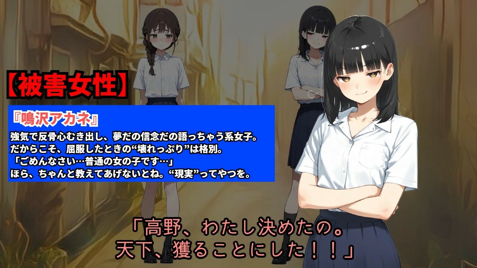 【羞恥体験告白】アカネは天下を獲りにいく 夢見る少女を無理やり犯して女にして、信念と処女を奪い去った夜