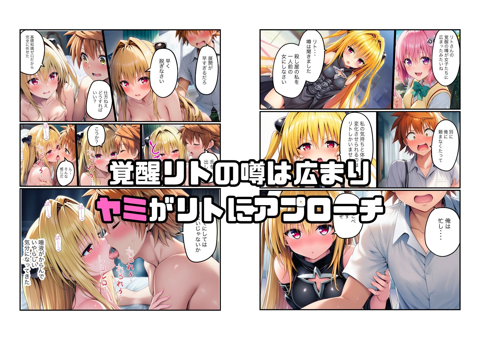 ハーレム計画のため、モモがララに作らせた発明品により、リトは肉食系男子へと覚醒する。覚醒したリトは春菜のところに向かい、強引に口説きセックス。覚醒リトの噂は間に広まり、噂を聞きつけたヤミは、リトにアプローチ。 リトの調教により、ヤミは持ち前のポテンシャルを発揮し、殺し屋からメスへと堕ちていく。欲望のままに振る舞うリトを注意したユイだったが、リトの口車に乗せられ、セックス。 従順なドM女へと覚醒していく。