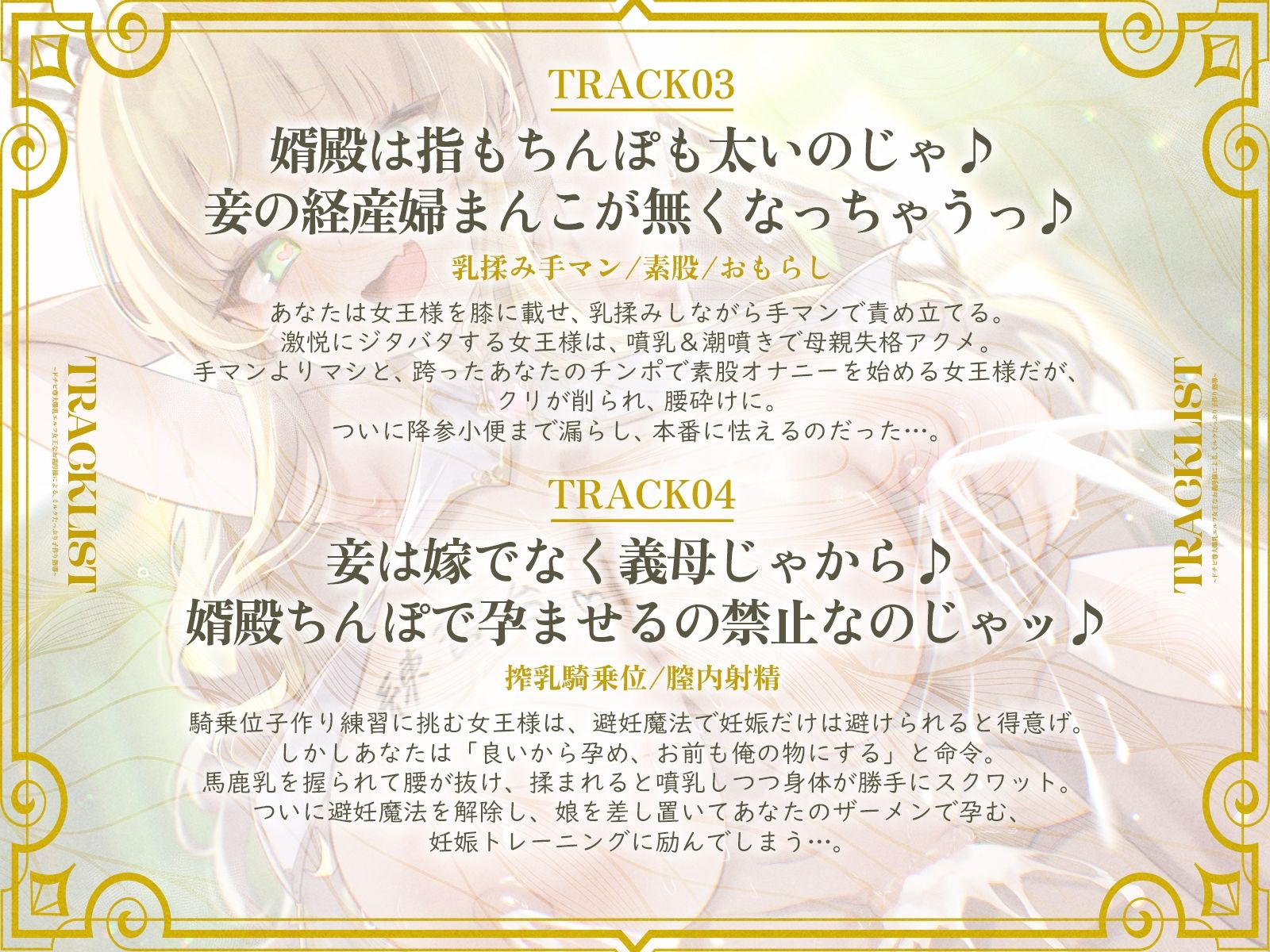 「娘の代わりに妾が練習台になるのじゃ!」…世界を救った勇者であるあなたは、エルフの姫と結婚するも、彼女の体が弱すぎて子作りができない。そんなあなたの前に、ドチビ爆乳のエルフ女王である義母・エルブンリーテが現れる。娘の代わりに練習台になると尊大に宣言する彼女は、実は経産婦でミルクも出る都合の良い存在。自信満々だった女王様は、やがてあなた専用の搾乳オナホにされてしまうことに…。