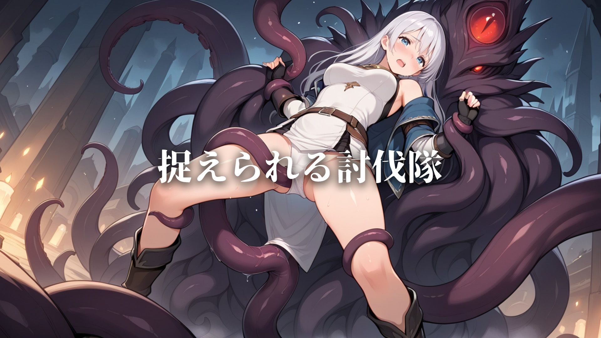 触手に拘束、凌〇される女戦士達がドクドクと精液を流し込まれ堕ちゆく王国の物語