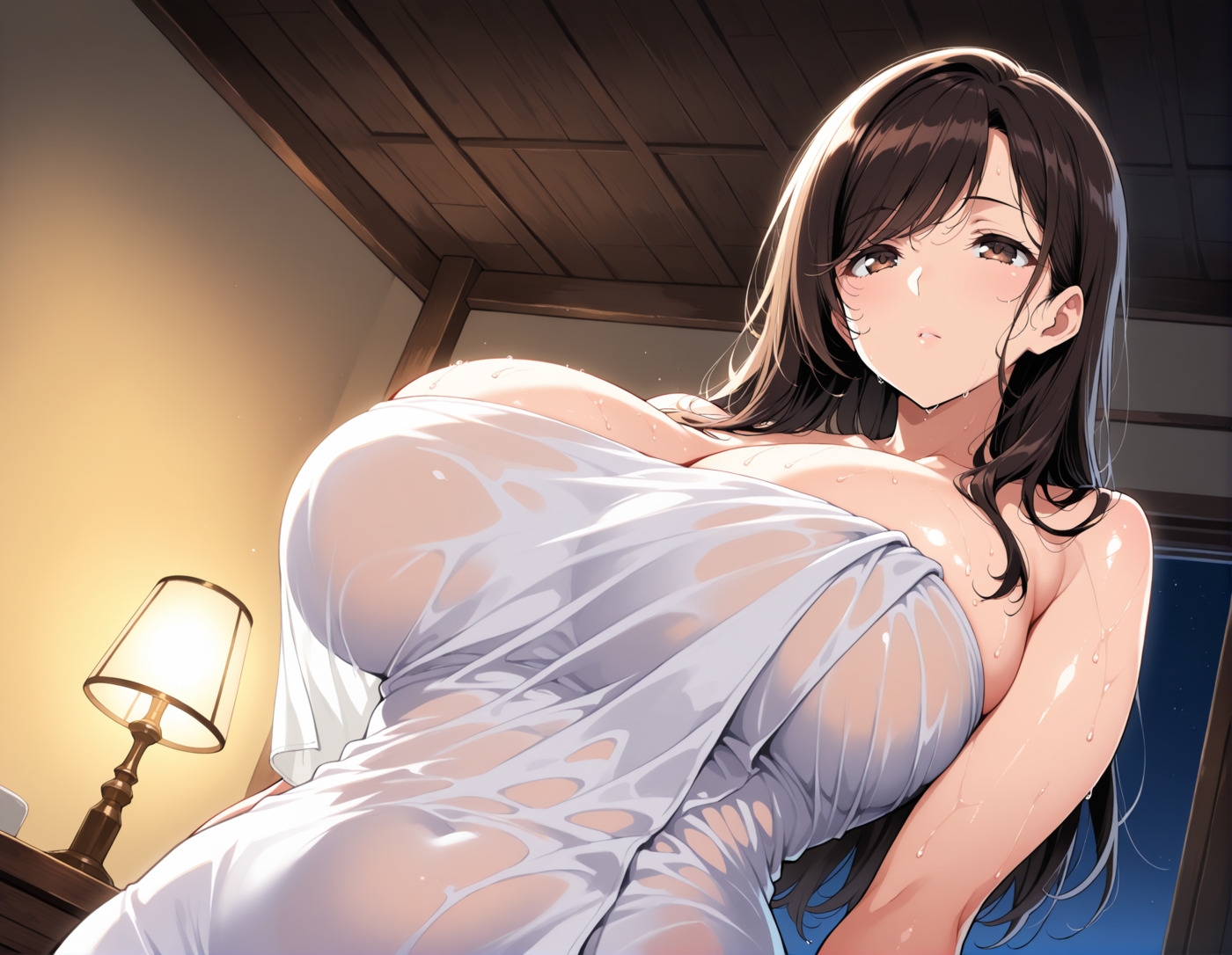 白シャツ人妻孕ませ ピンポンしたらエロ妻に生ハメ中出し