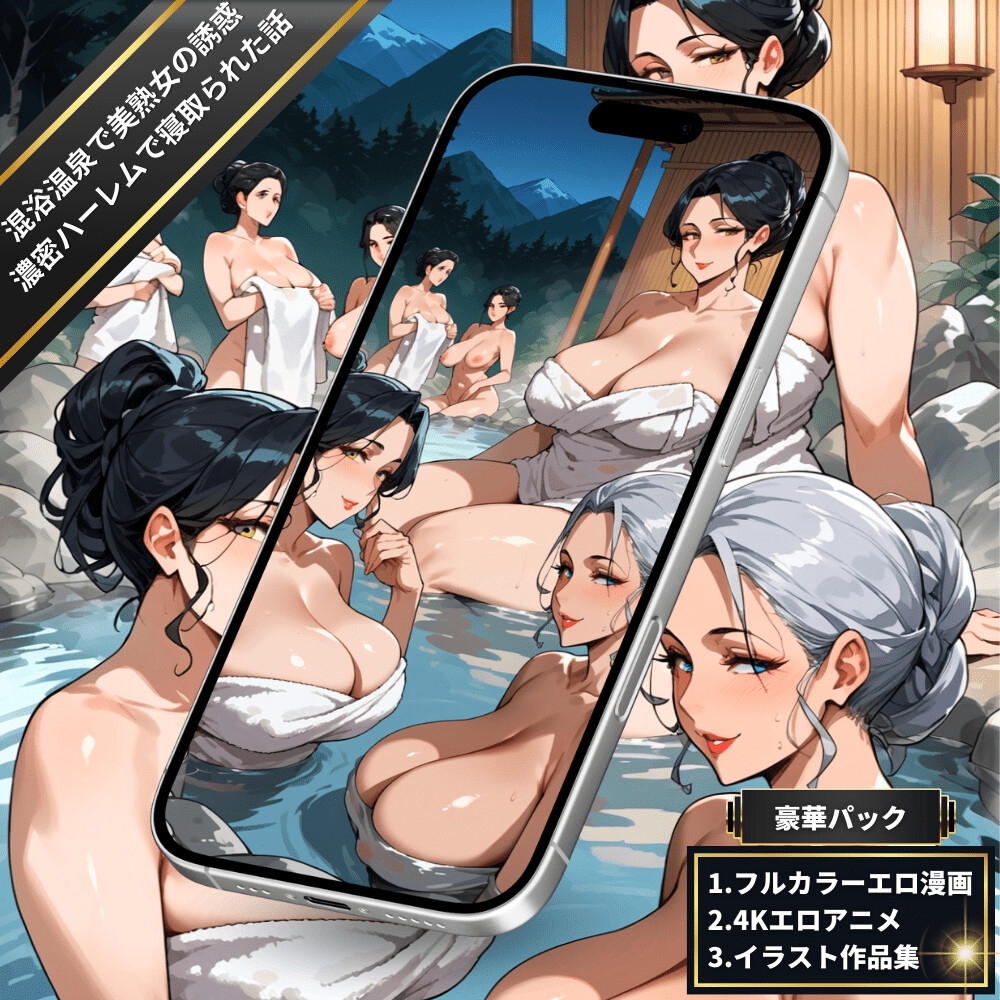 混浴温泉に入っていたら美熟女たちに誘惑されて濃密ハーレムで寝取られた話【4Kエロアニメ+フルカラーエロ漫画+イラスト作品集・詰め込み豪華パック】