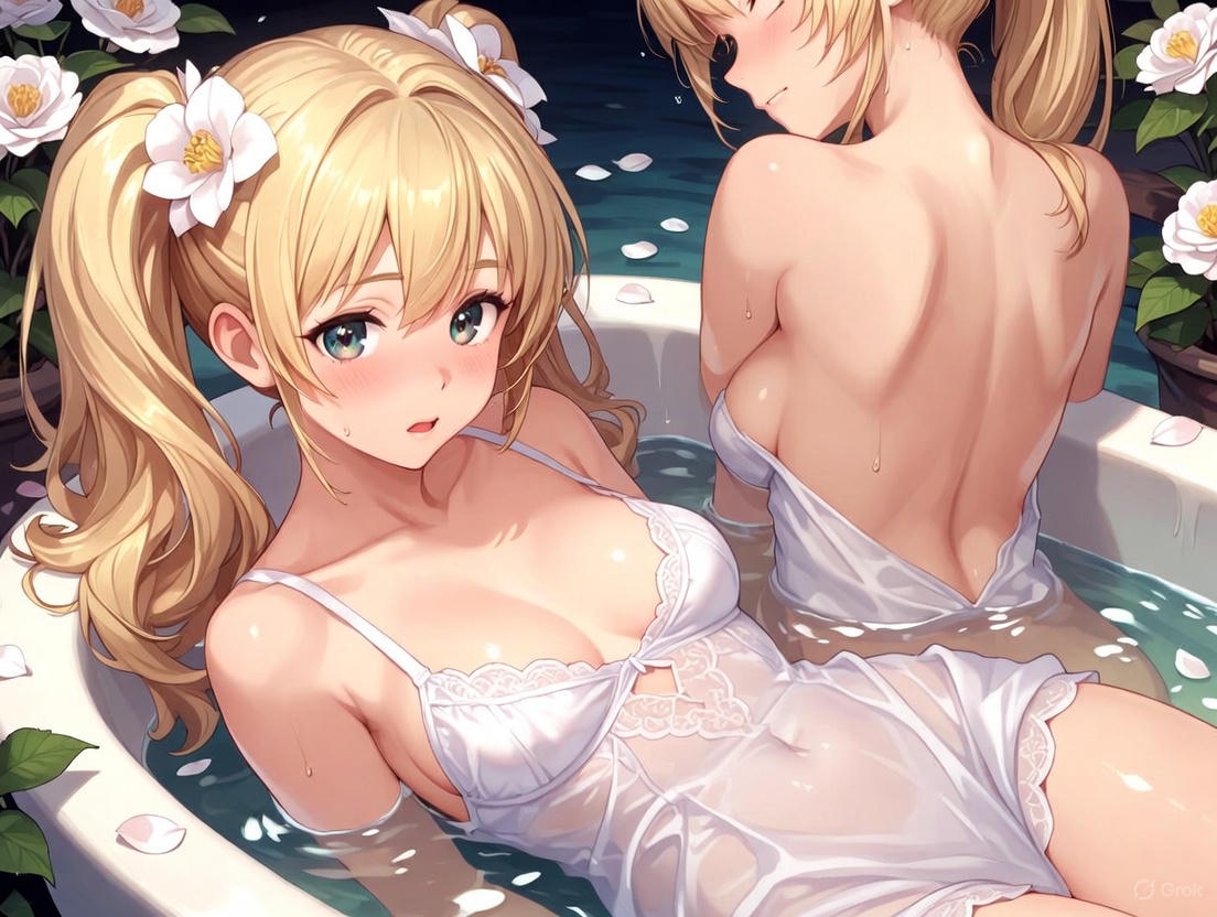 椿娘 001【匂い立つ湿度】濡れ透け白ランジェリーと椿の美少女 - 肌に張り付く極薄布の質感 - 【尻/バックショット/AI高解像度/差分あり】