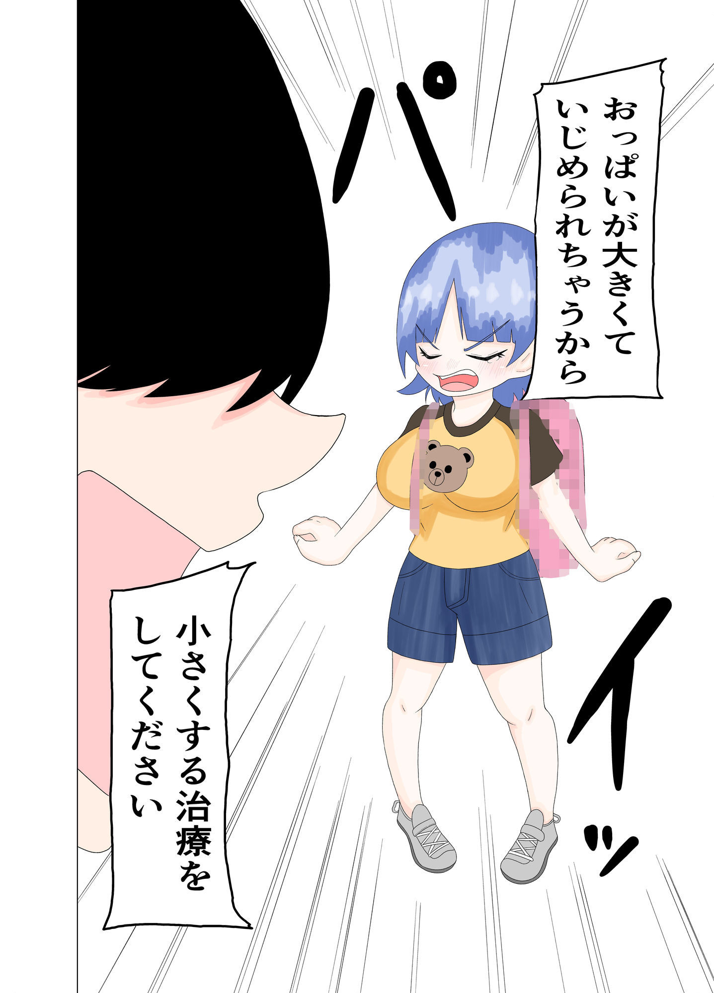 同級生よりもおっぱいが大きいことが原因で、いじめの対象になった少女。どうにかしておっぱいを小さくするために、病院へ行くことにした。だがその病院で、治療という名のセクハラに遭う羽目になる。セクハラ行為は段々とエスカレートしていくが、おっぱいを小さくするために必死に耐える少女のお話。