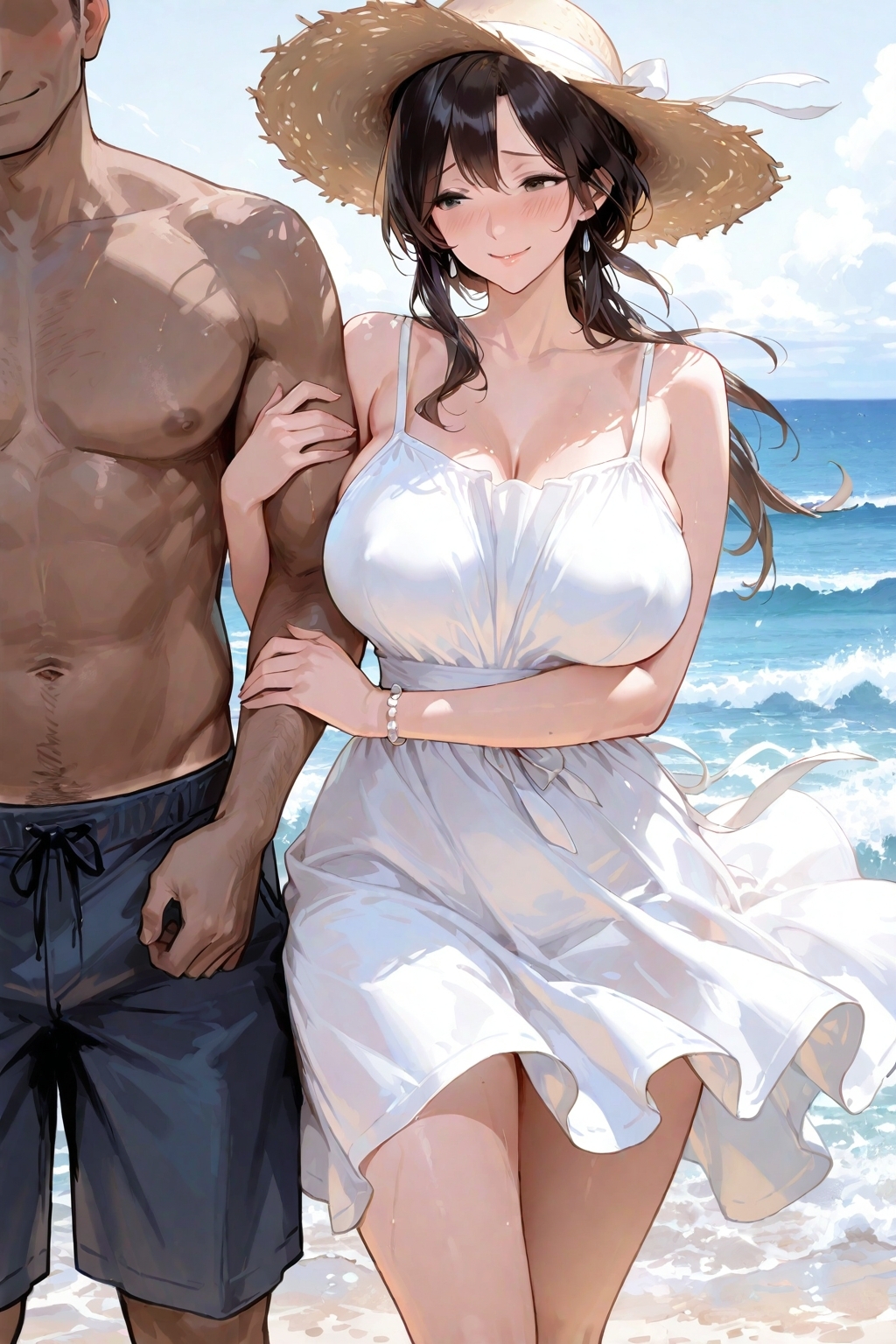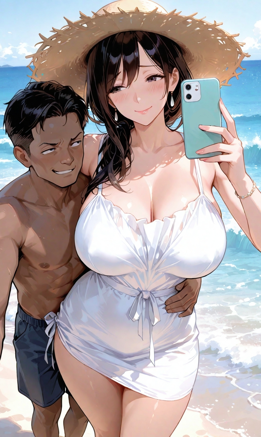 海辺で人妻が残す、誰にも言えない秘密の想い出──NTRを描く100枚のイラスト集。