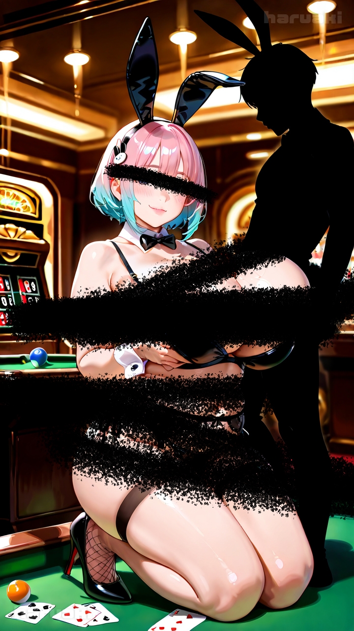 おっぱいを使ったサービスある巨乳バニーガールをテーマに数千枚生成した中から厳選されたものとなります。