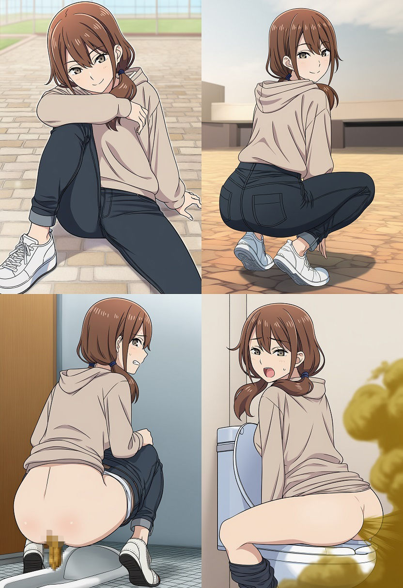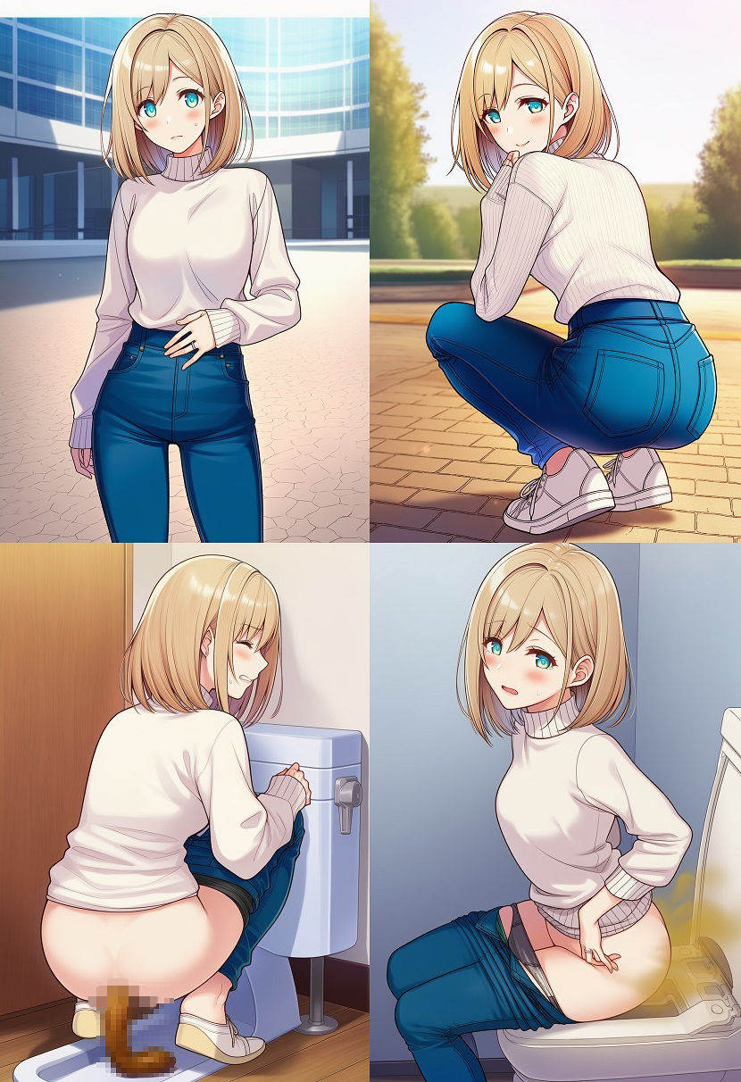 ジーンズ姿の女性たちをテーマにした オナラ・便意・排泄に関するシチュエーション集です。