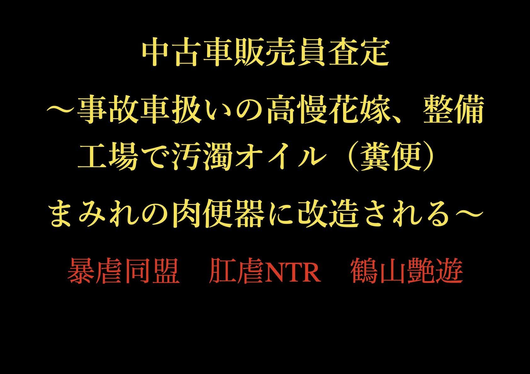 中古車販売員査定 ~事故車扱いの高慢花嫁、整備工場で汚濁オイル(糞便)まみれの肉便器に改造される~