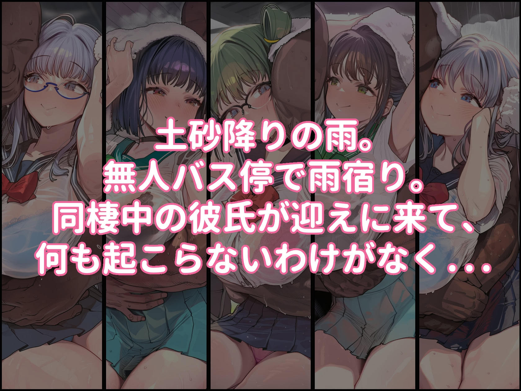 マンネリ気味な夫との夜の営みに刺激を求めた爆乳人妻がハードコアAVに出演。夫にそれを見せた上でメイドビキニに身を包み、本能のままにお互いを貪り合う種付けセックスをフルカラーで描いたCG集です。どすけべな人妻5人それぞれが、彼氏と濃密なセックスをストーリー仕立てで描かれています。エッチなオノマトペがページ中に溢れ、濃密なエッチを堪能できます。種付けモノらしく、全体的に汁量はたっぷりめです。