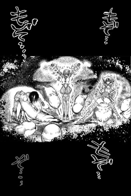 白濁ゥ蒙昧ィ……ふたなり少女が戦慄き悶える悦樂凌○絵巻物っ……!白黒漫画24ページ。