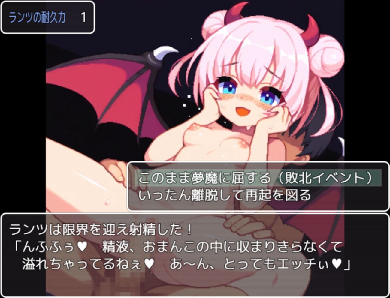 片手でもプレイできるお手軽バトルファックRPG。すべての戦闘がセックス。夢魔とエッチで戦い勝利するのが目的。タイパ重視で長々とした探索をしなくても、どんどんエロが飛び出てくる作品です。回想部屋、チートあり。総敗北イベント20種類 総使用CG100枚。この作品の最大の特徴として、登場する夢魔は皆優しいです。主人公を極端に罵倒したり、搾り殺そうとするような敵は出現しません。
