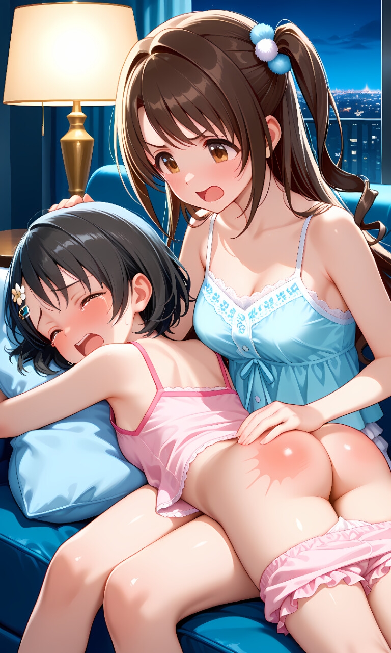佐々木千枝・赤城みりあ(アイドルマスター)お尻叩きイラスト集