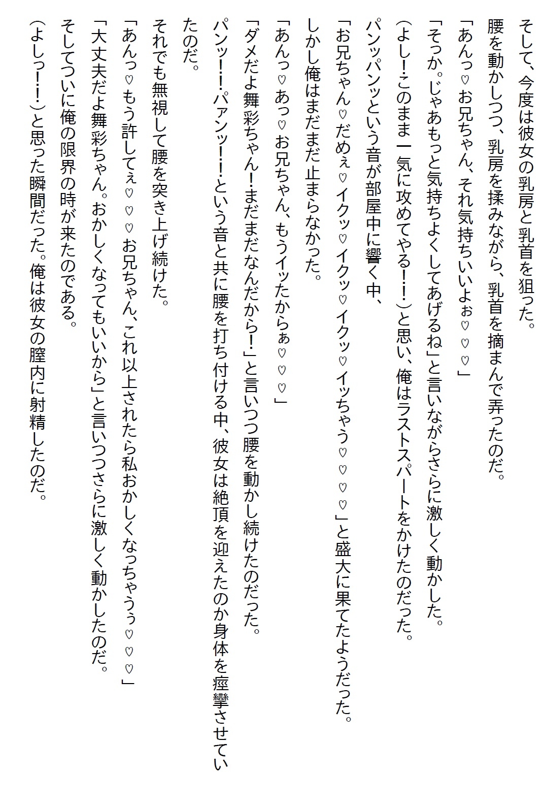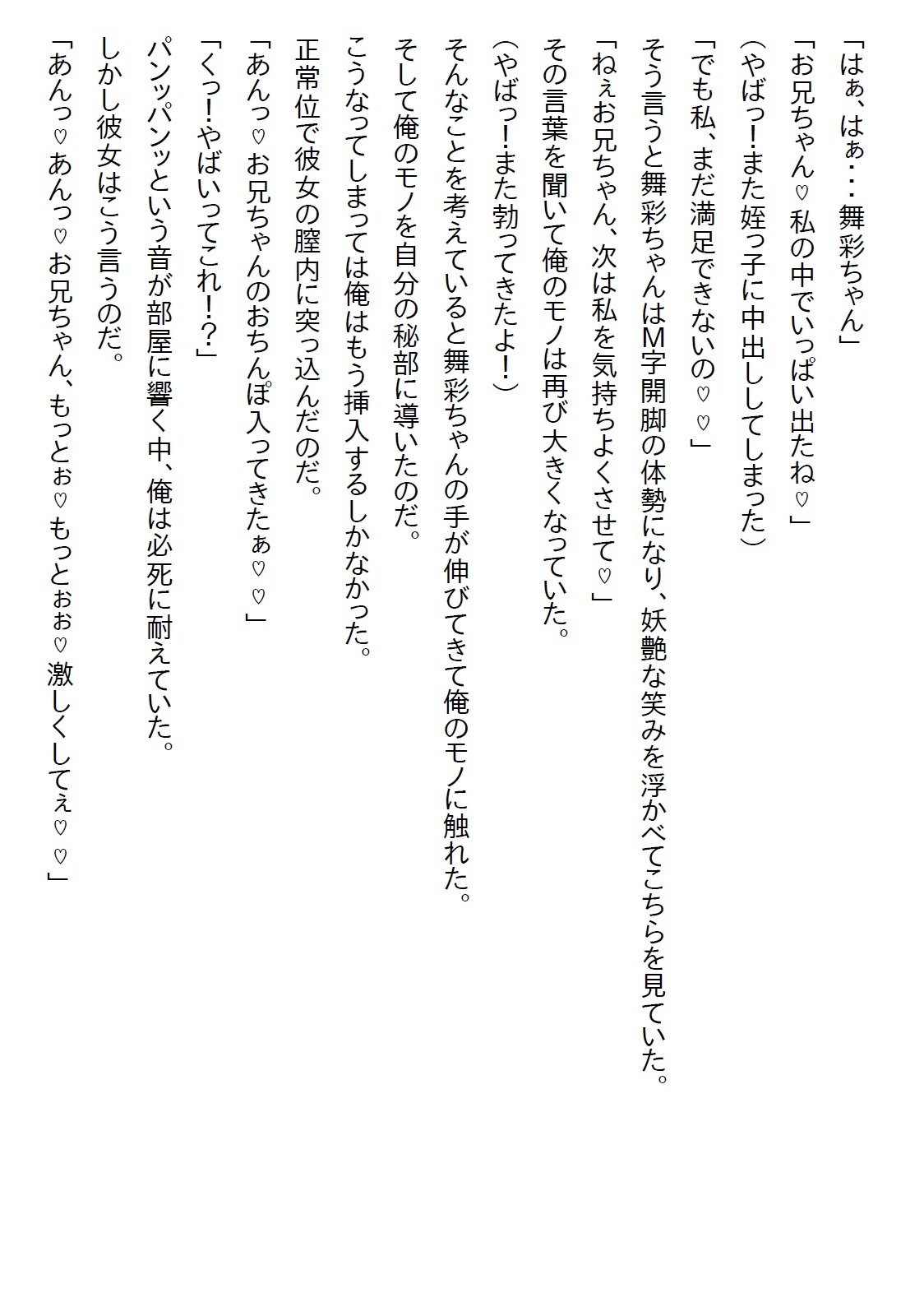 主人公・今治陽人(16)には8歳離れた姪っ子・舞彩(8)がいた。陽人には10歳年上の兄がおり、その兄は18歳で結婚して子供を作ったので、歳の近い姪っ子がいるのだった。赤ちゃんの頃から世話をしていることもあり、今では「お兄ちゃん」と言ってよく懐いている。そして、ことあるごとに舞彩は陽人に「結婚して」と言ってくるのだった。本来は結婚できない姪っ子。それが崩れたのが舞彩が18歳の時だった・・・
