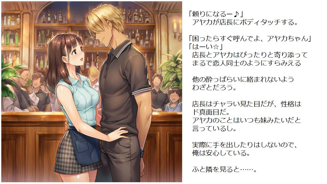 俺たちカップルと店長夫妻は家族のように仲良くしていたのだが、ある夜全員が酔っていた俺たちは恋人同士のセックスを見せ合うことに。そこから俺たちの関係性はドロドロに……。