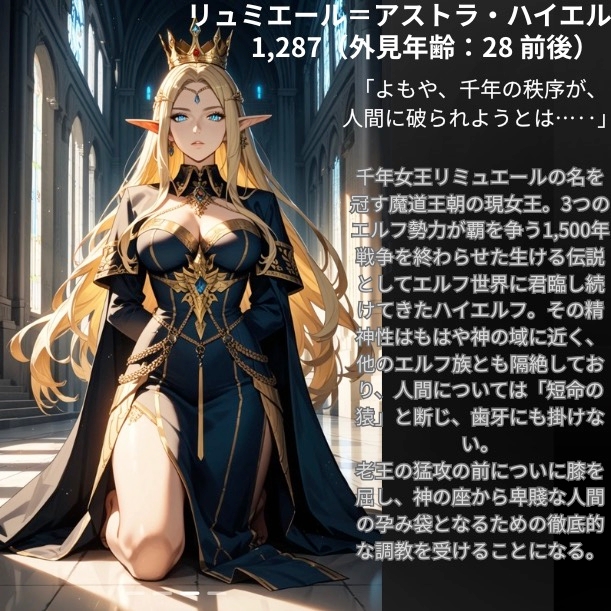 【ファンタジー/エルフ/巨乳堕落】~エルフ王国編 ハイエルフ尊厳破壊~老いた帝王の征服録 暴君は高貴なる王妃・騎士・聖女を悉く支配する