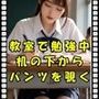 教室で勉強中 机の下からパンツを覗く